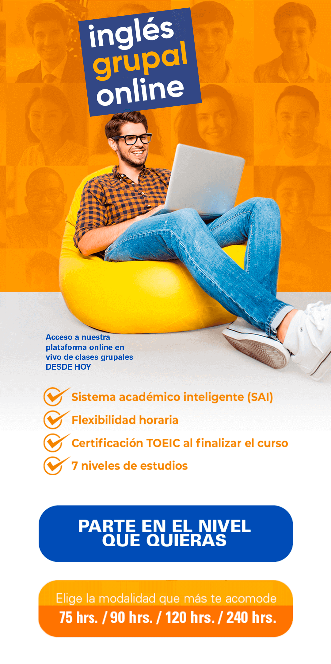 Todos nuestros cursos (240 horas) cuentan con la certificación internacional TOEIC.